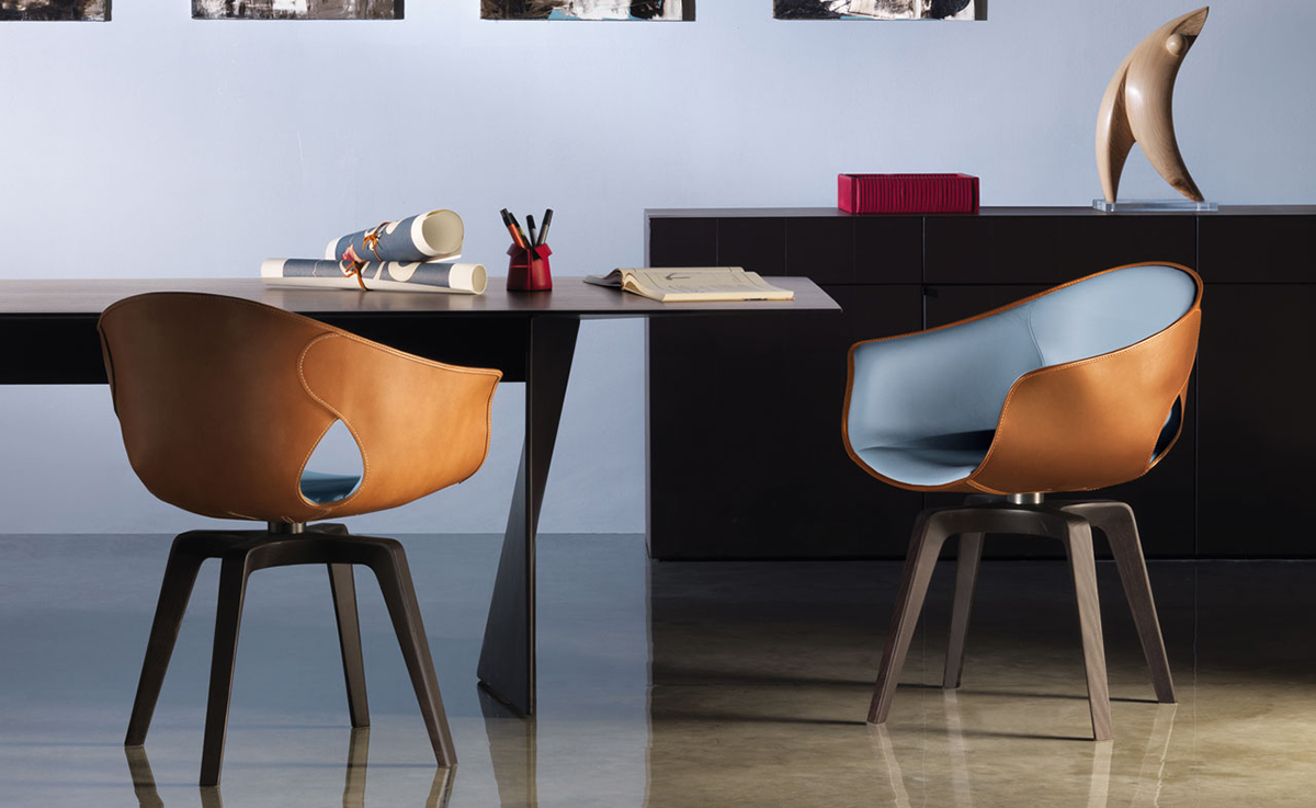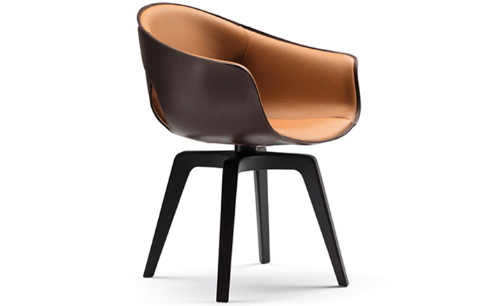 柔软的皮革外壳,舒适和保护。一个精致和简单的安乐椅。整齐的,​​必要的,舒适的。罗伯托-拉泽罗尼设计的姜椅既是一个自然的伴奏弗雷德办公桌,并作为一个单独的座位。旋转的版本是完美的一个研究领域,而固定的模式是理想的餐桌。有一个在设计,用料和做工姜椅和弗雷德之间的引用的持续发挥。姜椅的框架是在特殊的刚性,高密度,低厚度,模塑聚氨酯。深棕色或骆驼:它完全在两个变体涵盖5毫米厚的鞍皮革外,单层。所述框架的内表面覆盖在佩尔Frau®颜色系统中创建色彩和材料之间有吸引力的对比。技术娴熟的皮件也可以看出,在珍贵的细节,例如沿外边缘运行可见明缝,形成一个优雅的装饰效果。座位塞满了聚氨酯泡沫。该基地有四条腿的鸡翅木色固体的白蜡木用三角轮廓。用于固定帧的支持是在黑色涂钢和旋转模型允许一个360°的旋转。
