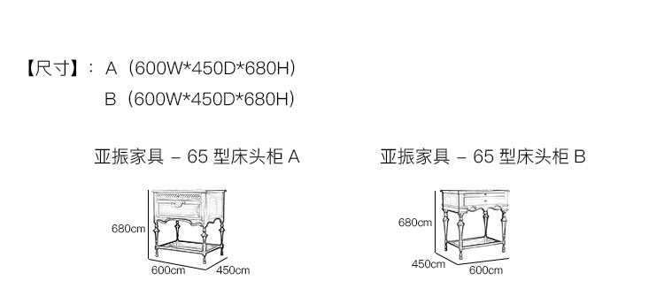 亚振家具 - 65型床头柜 产品尺寸/示意图