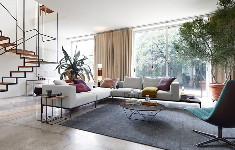 现代世界性的优雅生活方式。沙发的柔软可以使你舒适的陷在沙发里,满足了你对沙发安逸的想象。精致的框架在黑色的哑光漆作用下显得格外清秀。同时,为Jaan Living的宽敞的软垫搭配也做好了准备舞台。别致的,诱人的,与此同时,皮革的随意外观,与室内的灯光填充相得益彰。玻璃板或马鞍皮革的木板,对于日常小憩或者闲暇的阅读提供了非常方便的场所。Jaan的整体结构也提供了更大的座位空间,最吸引人的地方在于,两种结构都可以很从容的组合起来。对于新的几何图形和场所,适合于个人偏好和摆设吗。很自然的优雅。