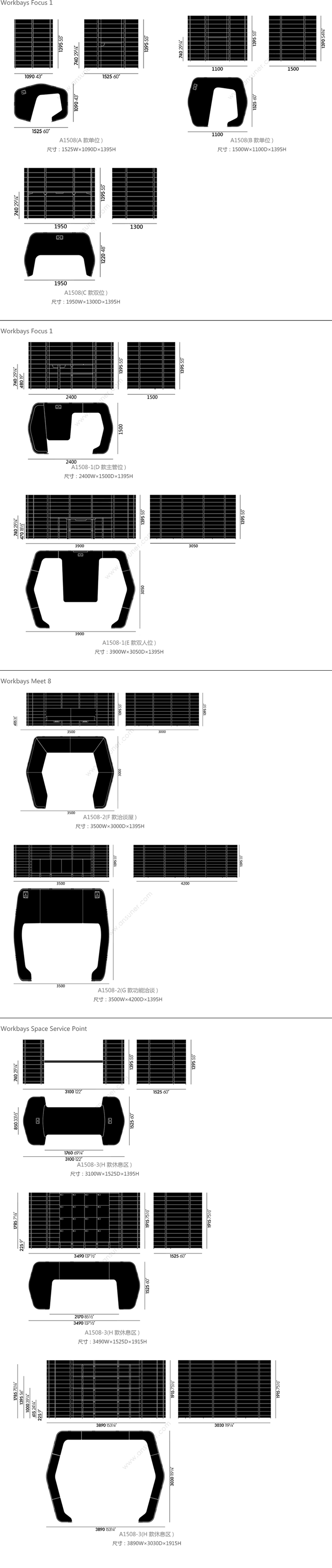 Workbays Focus 1 系列尺寸/示意图