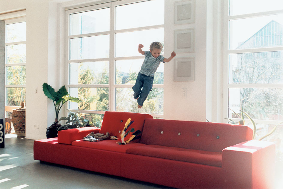 Hella Jongerius的Polder沙发在任何内饰中都创造了一个焦点:它的不对称形状和各种面料和颜色的靠垫赋予它独特的标志性外观。
