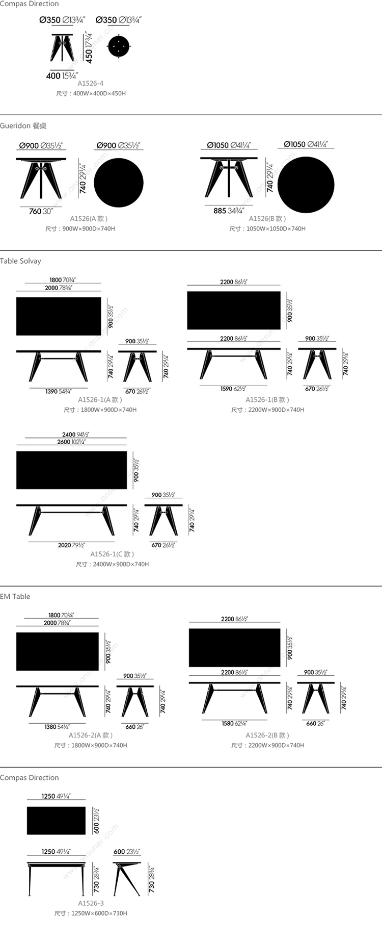 Tabouret Solvay 系列尺寸/示意图
