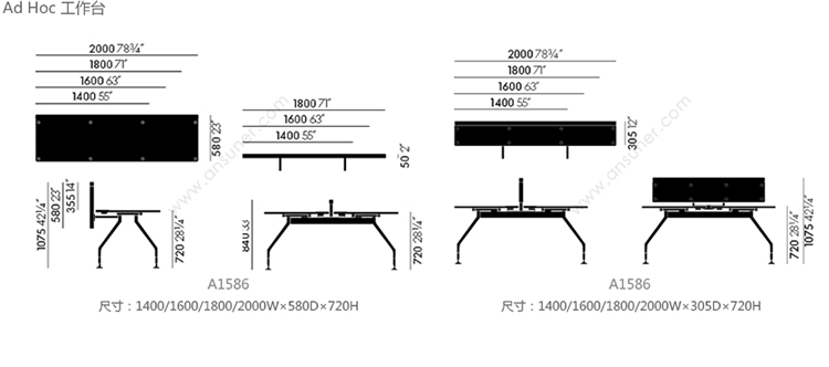 Ad Hoc 职员台 系列尺寸/示意图