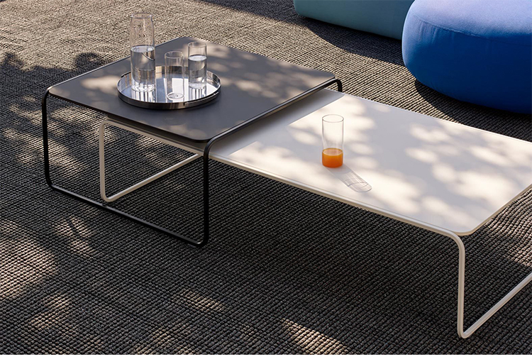 金属管状框架,作为一条丝带,定义和发展了圆型结构的小桌子。因此,金属管状结构,就像丝带一样轻,定义和发展了圆桌的圆形框架。它有两种高度,形状和颜色可以重叠。足以创造一个对话。
