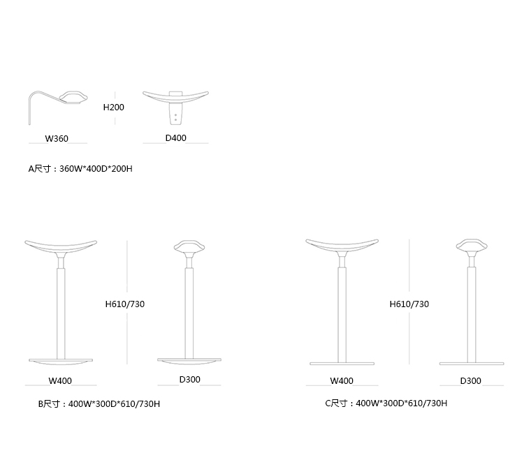 C:400W*300D*610/730H