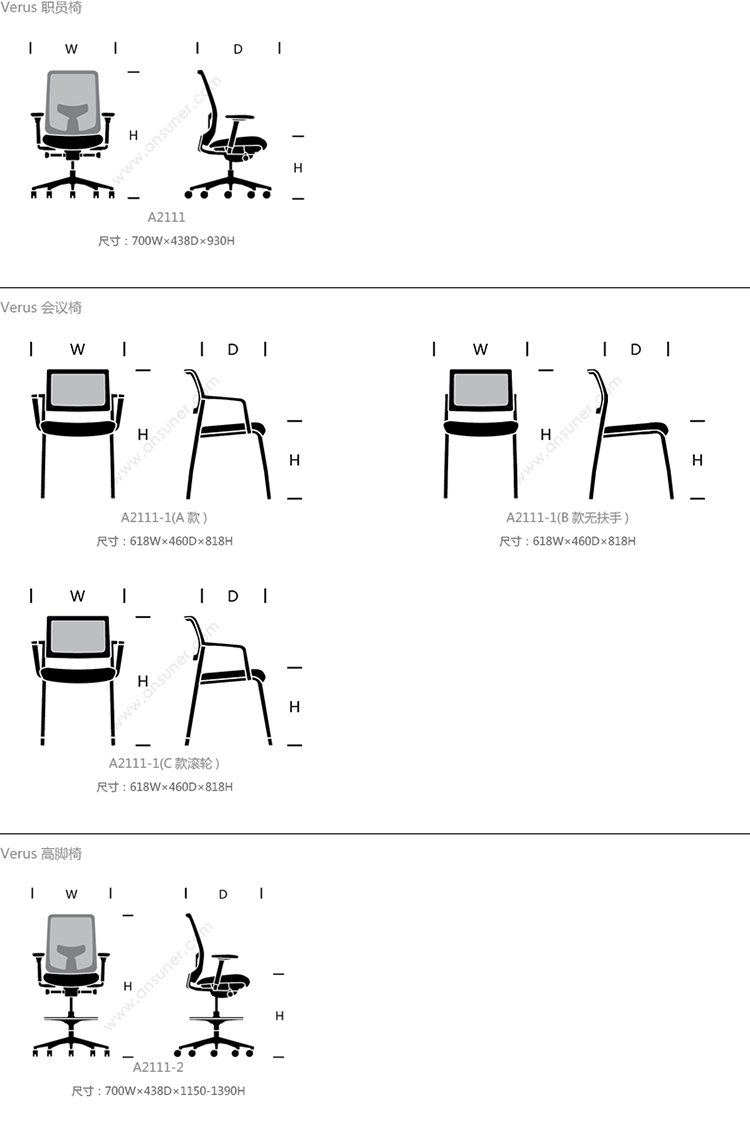 Verus 职员椅 系列尺寸/示意图