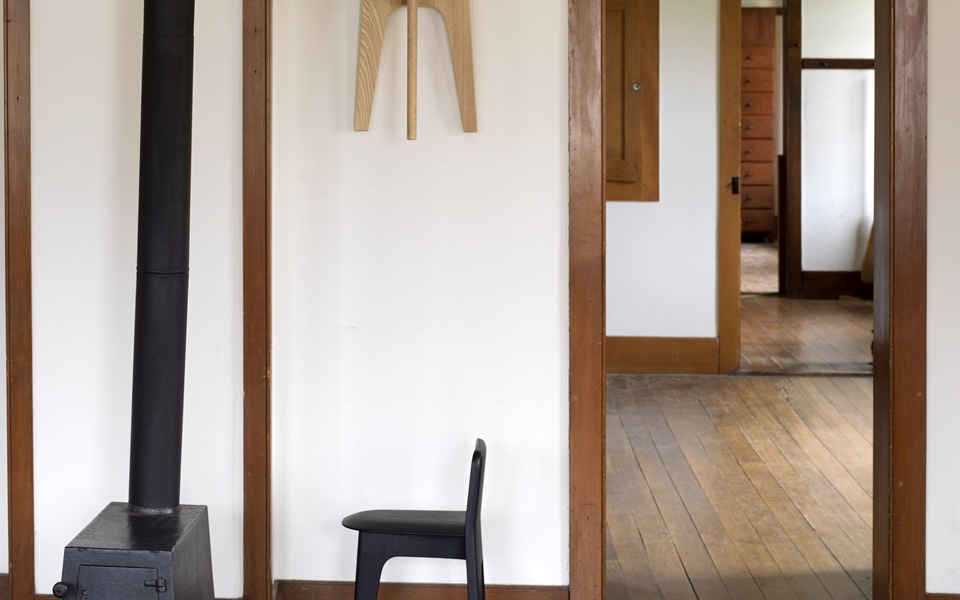 Stove _凳子。实心白蜡木漆成清漆或漆面。包括清漆白蜡木墙钩,一个/凳子