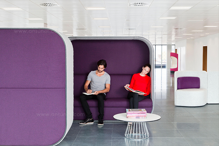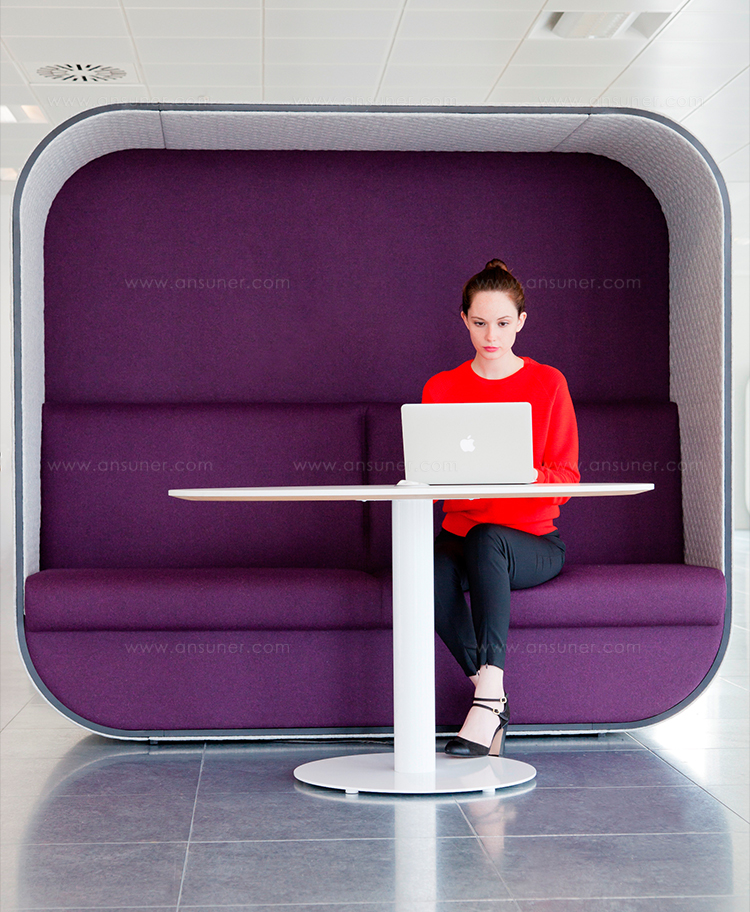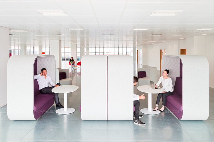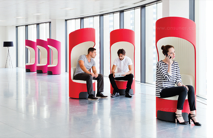舒适且符合人体工程学要求的蚕茧(Cocoon)为非正式环境创造了理想的会议空间。这种高的、软垫的结构可以吸收周围环境的背景噪音,而不需要内部结构。