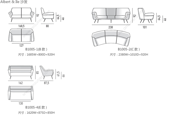 Albert & Ile 沙发 系列尺寸/示意图