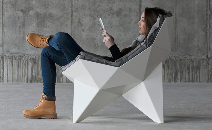 由乌克兰设计师Zbroy Svyatoslav和Dmitry Bulgakov合作创办的设计工作室ODESD2设计的Q1 lounge chair(Q1 躺椅)。半球形构思基于巴克敏斯特·福勒(美国哲学家、建筑师和艺术家)球型屋顶设计,这种类似球型穹顶的构造承重能力更大,而且凌厉的线条与舒适的内饰,相得益彰。