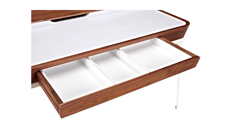 brooklyn desk(布鲁克林桌)是一件非常酷炫的家具,非常迷人且具有实用性,并设置了隐藏的区域给那些令人烦恼的小工具和电缆绳线。制作采用精选MDF板基材胡桃木或水曲柳木皮贴面、钢制脚架、环保油漆喷涂,做工精湛细致,品质一流。