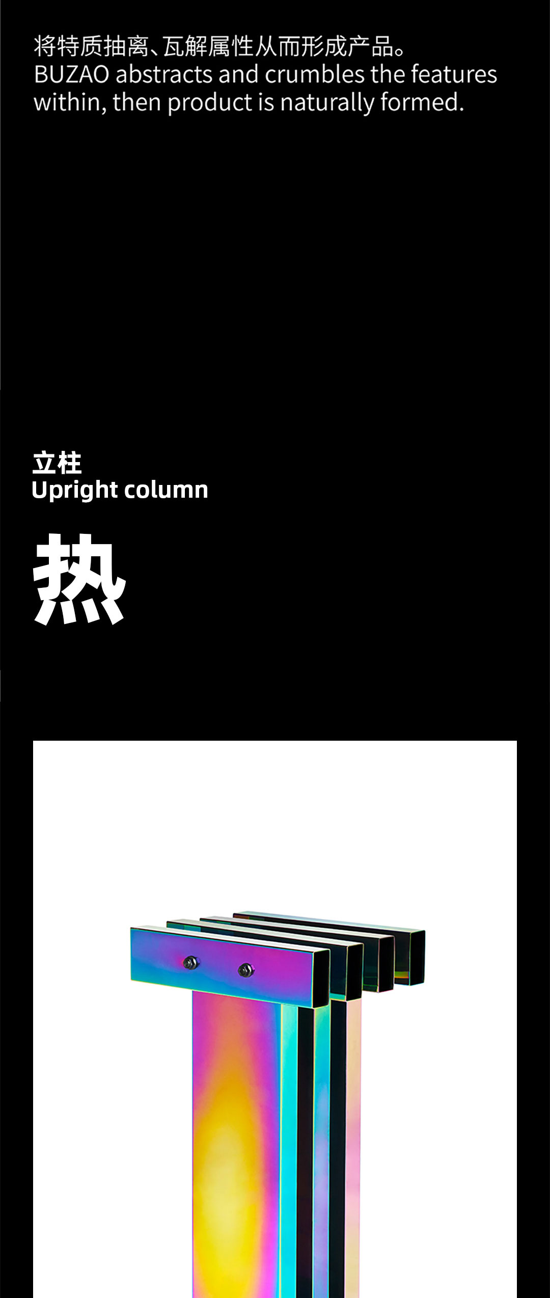 成熟常态的工艺完成规律性标准的矩形折面,与不可确定变幻成色的电镀技术,理性与非理性交集的不可控结果——不造,非常态。