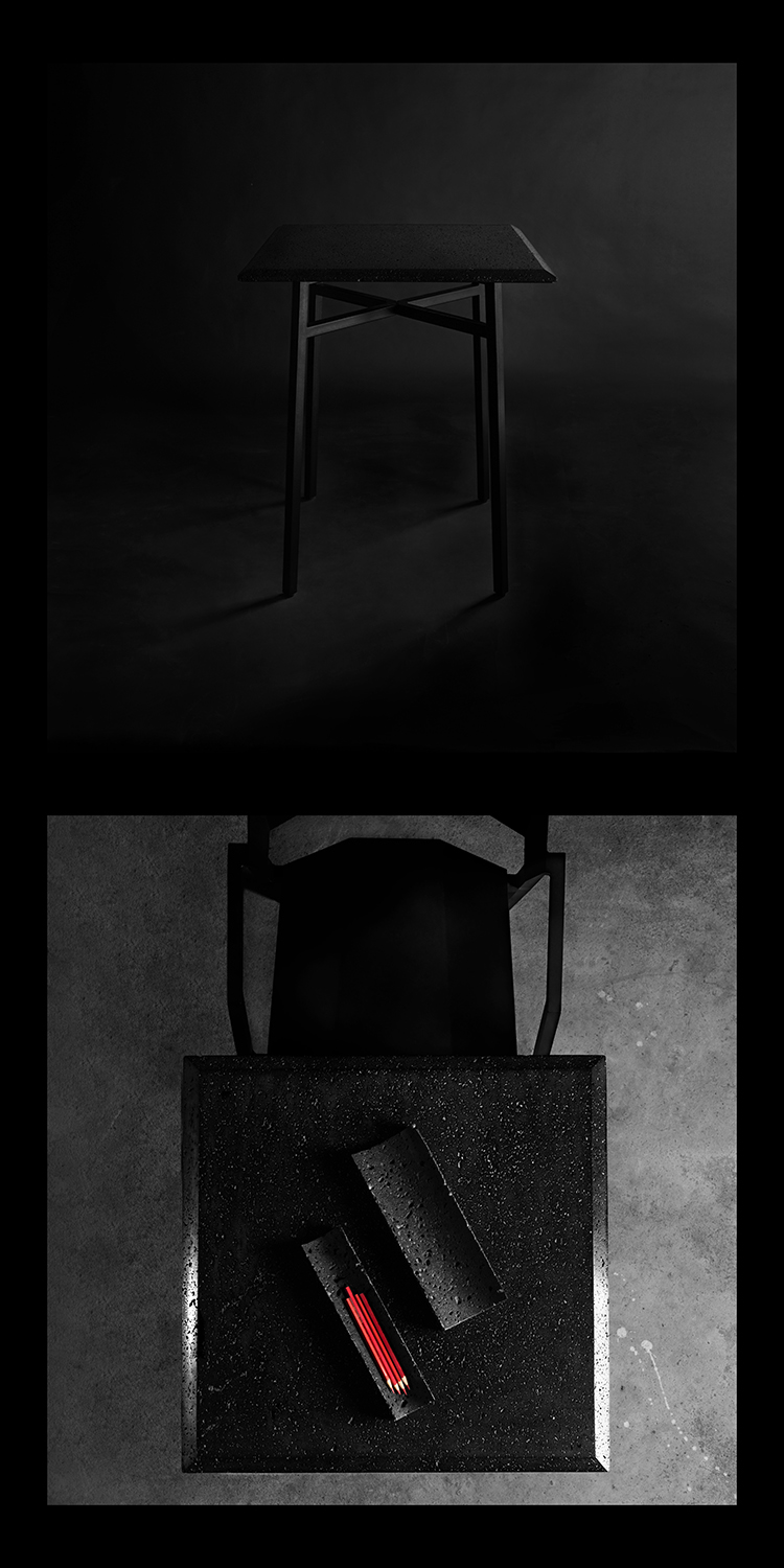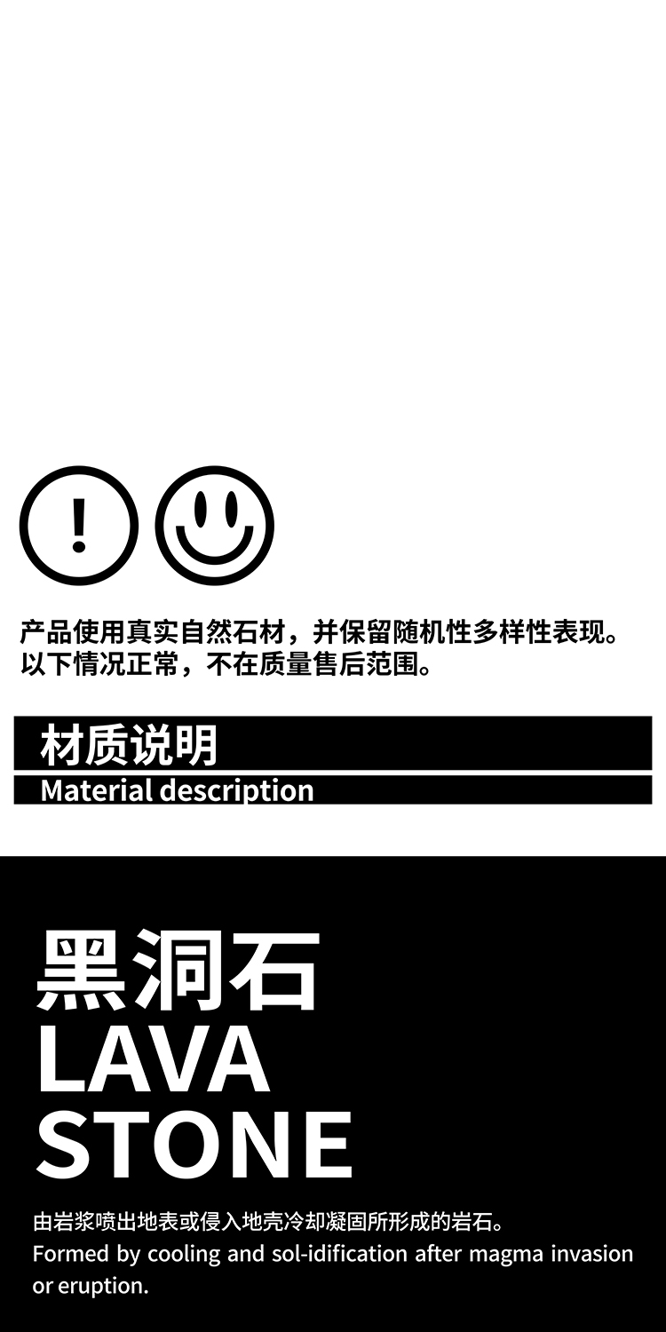 洞黑系列,洞悉秘密,来自地心的喷发。极想把洞石的芳华寂寞倾述出来,呈现于日常并使用它。尝试将洞石塑造各种形态,原材,呈浅灰色;亚光,颜色渐渐加黑;抛光,纯黑了。三种状态,魅力各异。深入践行,洞石的特性愈显,吸音、防水、防火、保温、隔热,耐酸碱、耐腐蚀、耐沾污、耐霉变,且无污染,无放射性。惊喜不断,质量很轻的洞石,居然强度很高,轻、硬,可塑性强,气孔式的通透,赋予了极简中的奢华。触目的拙,爱不释手。