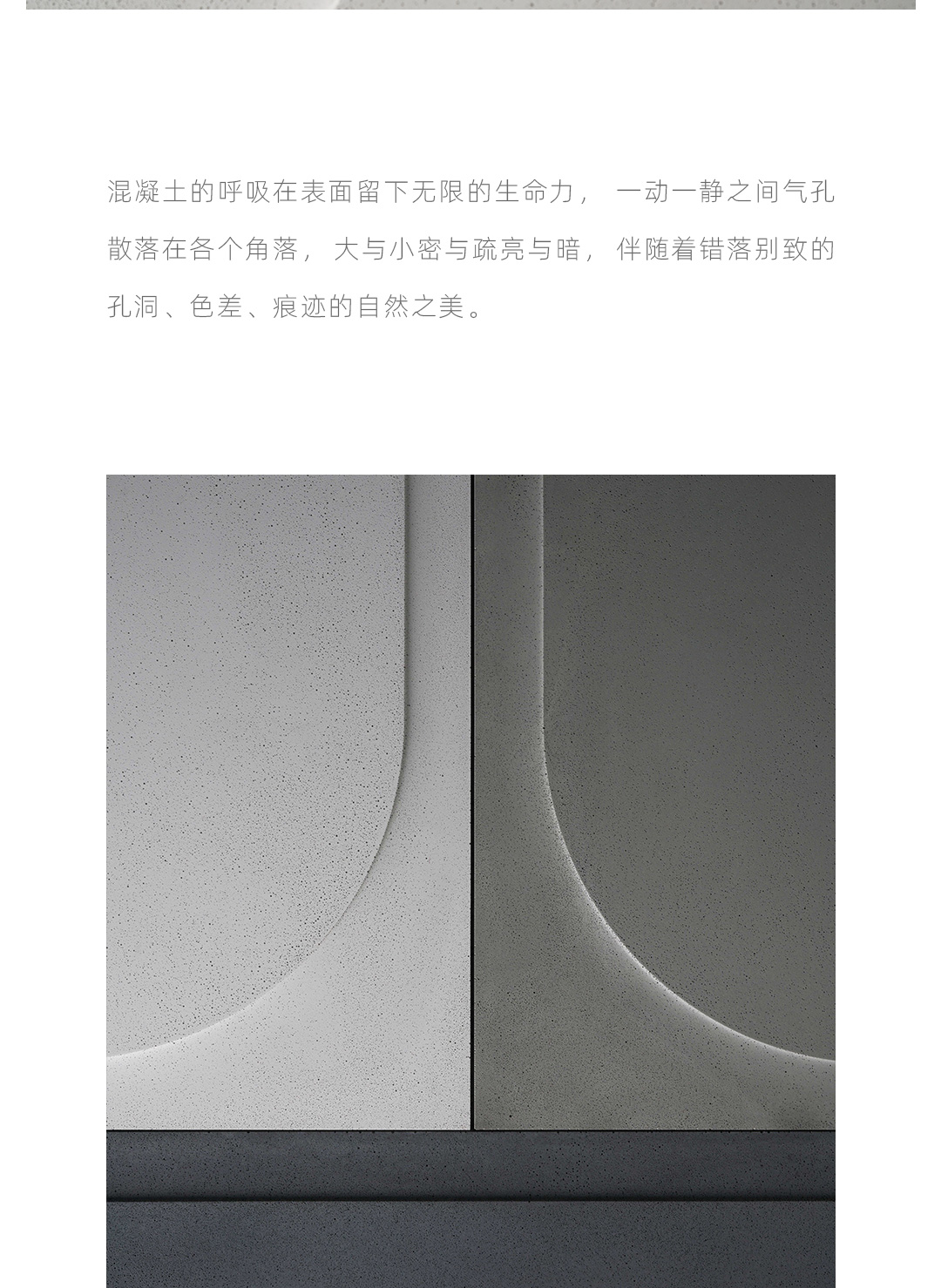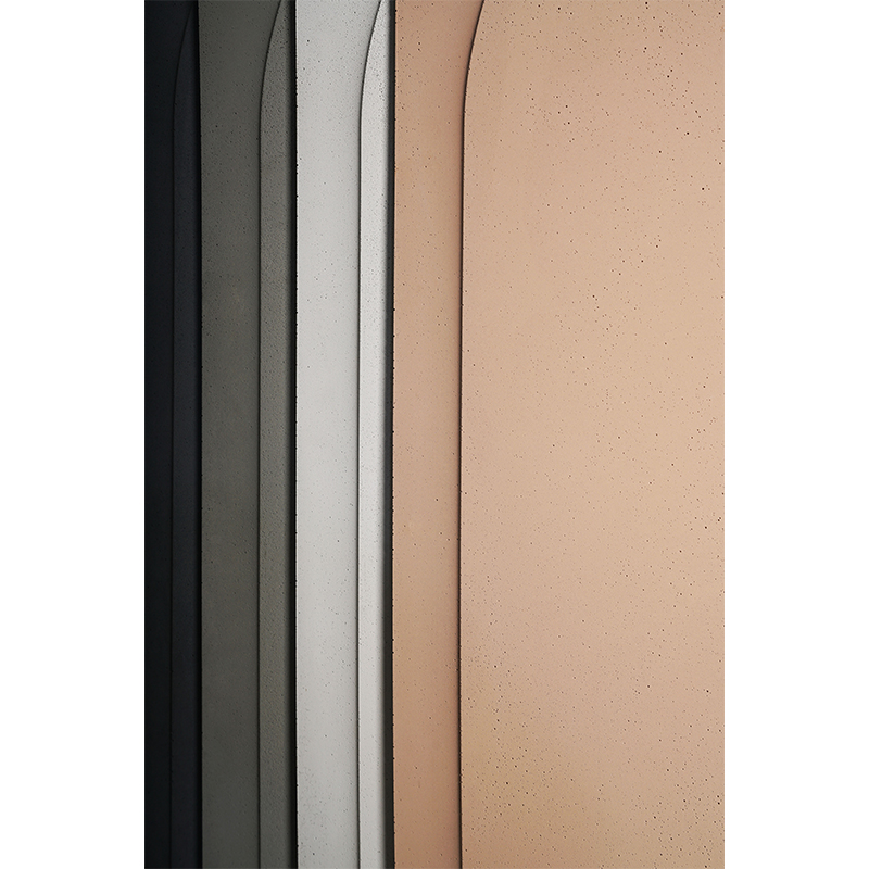 O从方与圆直线与曲线平面与弧面之间构建一种对偶关系,从罗马斗兽场建筑中得到启发,用当代的设计语言形式进行诠释,一个圆象征着一个空间一种视角展开想象,从不同视角中看到自我的认知和理解; 圆从方中向外凸起形成正负形的立体空间,从建筑室外走向室内,在空间中与声音空气阳光产生关系,有形和无形的交织富有装饰性和想象力;
