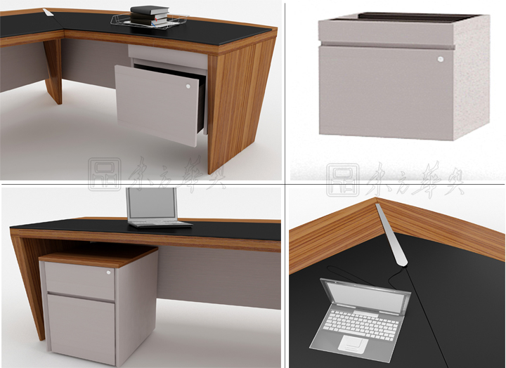 ※ 上图为大班台不同角度的展示,突出每个细节做工的精细,让我们对工艺的细腻产生美的视觉冲击,线条流畅,有渲染力!