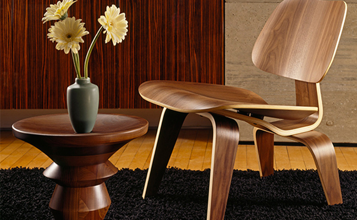 Designers Charles and Ray Eames established their long and legendary relationship with Herman Miller in 1946 with the boldly original molded plywood dining and lounge chairs.Designed to comfortably fit the body,the sculpted form of the molded plywood chairs are produced using thin sheets of lightweight veneer gently molded into curved shapes with natural rubber shock mounts to absorb movement.Since then,the chairs'aesthetic integrity,enduring charm, and comfort have earned it recognition as the best of modern design.Available in either a lounge or dining versions with chrome-plated steel or wood legs.