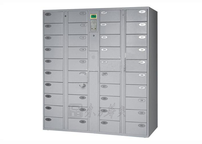 寄存柜柜体选用优质冷轧钢板,厚度不小于1.0mm,经冷加工成形后,用二氧化碳气体保护焊焊接装配而成,柜体结构坚固结实。柜体表面经除锈、除油、打磨、磷化处理后喷塑(不接受喷漆)。箱门背面增加纵向加强筋,提高箱门的防撞击能力。箱门两侧呈一定角度的弧线外形,增强箱门的防撞击能力,并且有效防止使用者因疏忽碰伤、磕伤。电控锁采用棘爪式结构,360度防撬、防插。