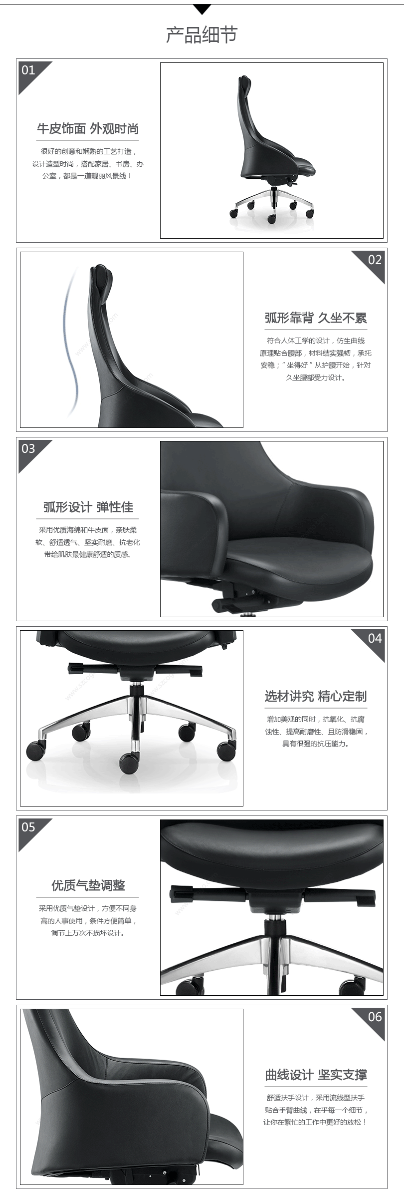 符合人体工学的设计,仿生曲线原理贴合腰部,材料结实强韧,承托安稳;“坐得好”从护腰开始,针对久坐腰部受力设计。"