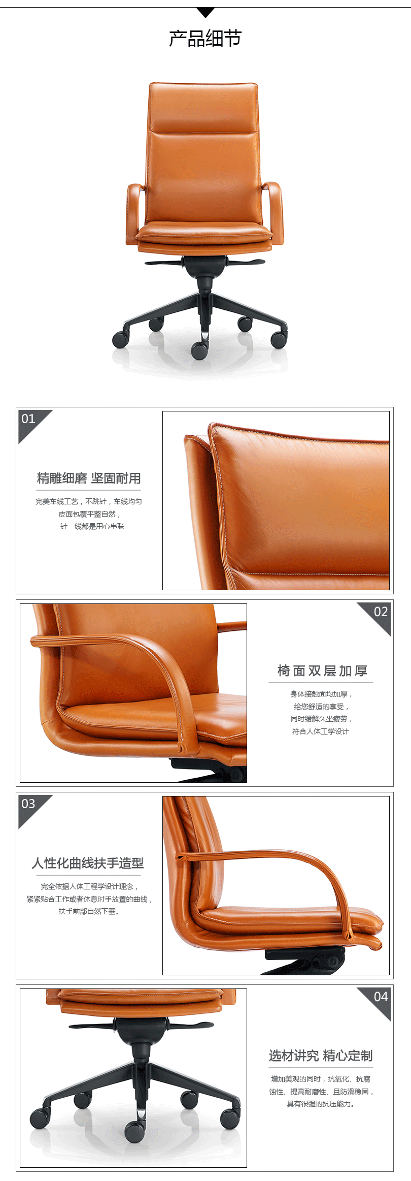 奢华大气,彰显钻石般的品质,时尚格调,营造出不俗的空间氛围,以简单的线条勾勒出不平凡的家具。360°全方位旋转功能,更好的保护您的脊椎和关节,起到缓冲作用,帮助您提高工作效率。