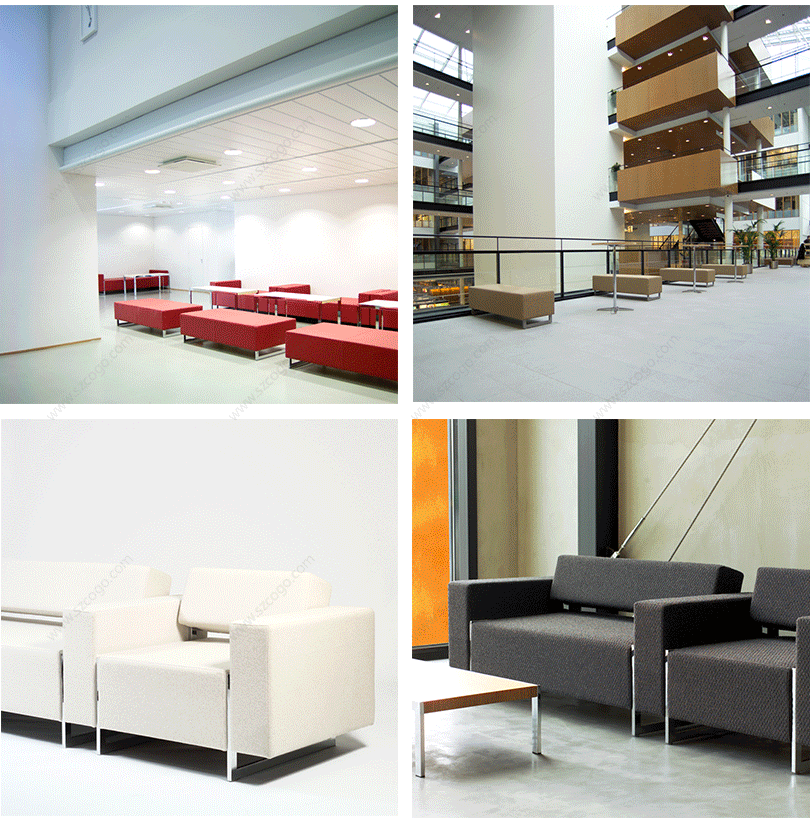 BOX沙发有标准的单人位、双人位、三人位沙发和休闲长凳组成。沙发的靠背可选配,扶手可共用。面料可选择布艺或皮革,为您的接待区打造独特的装饰效果。