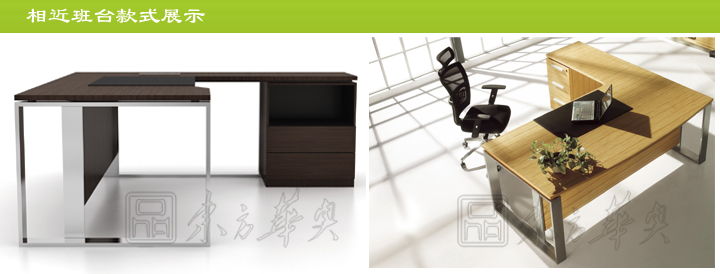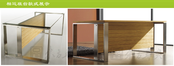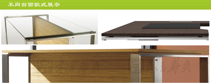 ※ 上图为班台台面不通过材质和款式的展示图,可以选做玻璃台面,也可选做实木台面,台面款式可以定做,以最后图纸规格款式确认为准,还可选配皮革写字板。