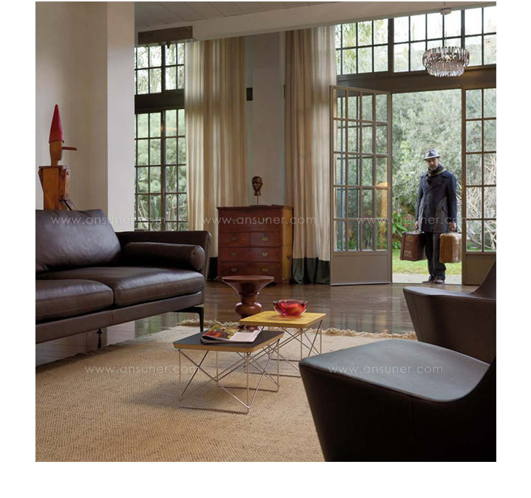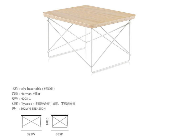 Wire Base Table(线基桌)是休闲用品非常有代表性的作品之一,伊姆斯设计的椭圆形茶几和方形茶几相配套使用,随着人们的运用,伊姆斯方形茶几(Eames Wire Base Table)很多时候被独立开来,因为它的轻巧,所以被人们当成了户外用品,它的功能不仅如此,像我们经常为笔记本的放置问题而烦恼的时候,他出现了,小孩不知道去哪里写字、看书的时候,它出现了,方形茶几除了有家具用途以外,还可以做为家居装饰物来装点房间。