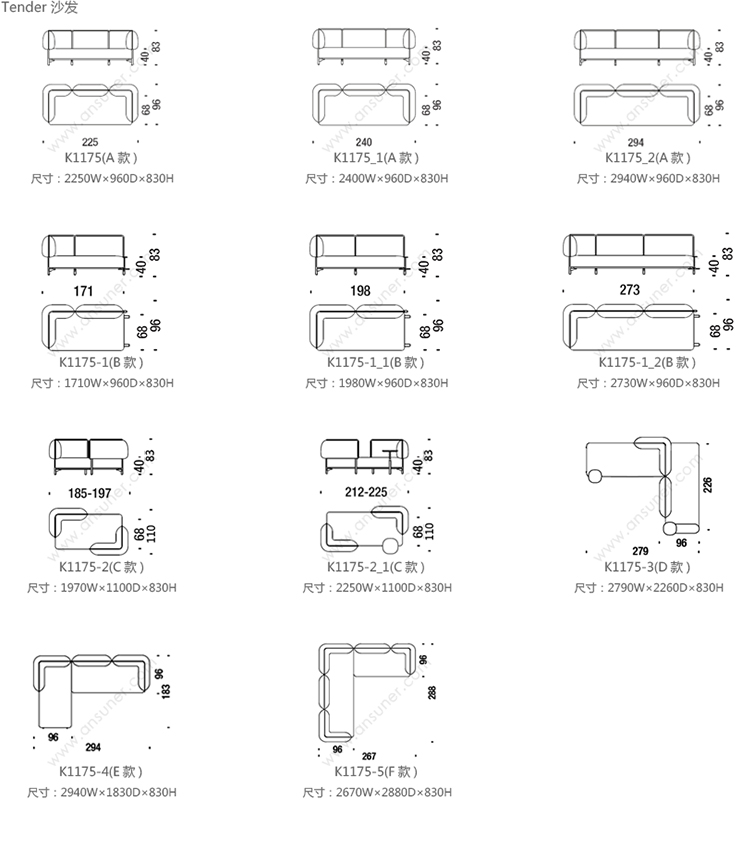 Tender 沙发 系列尺寸/示意图