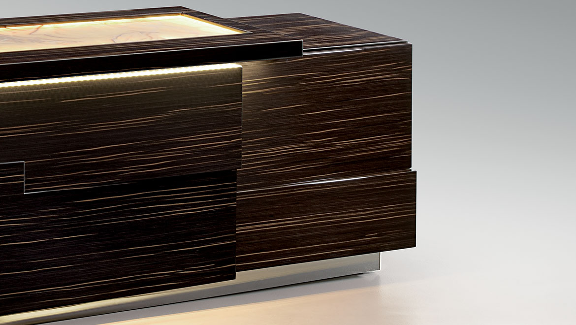 BASE Wood with steel details with polished chrome, gun-metal grey, Bronze Shadow, polished or brushed brass finishing