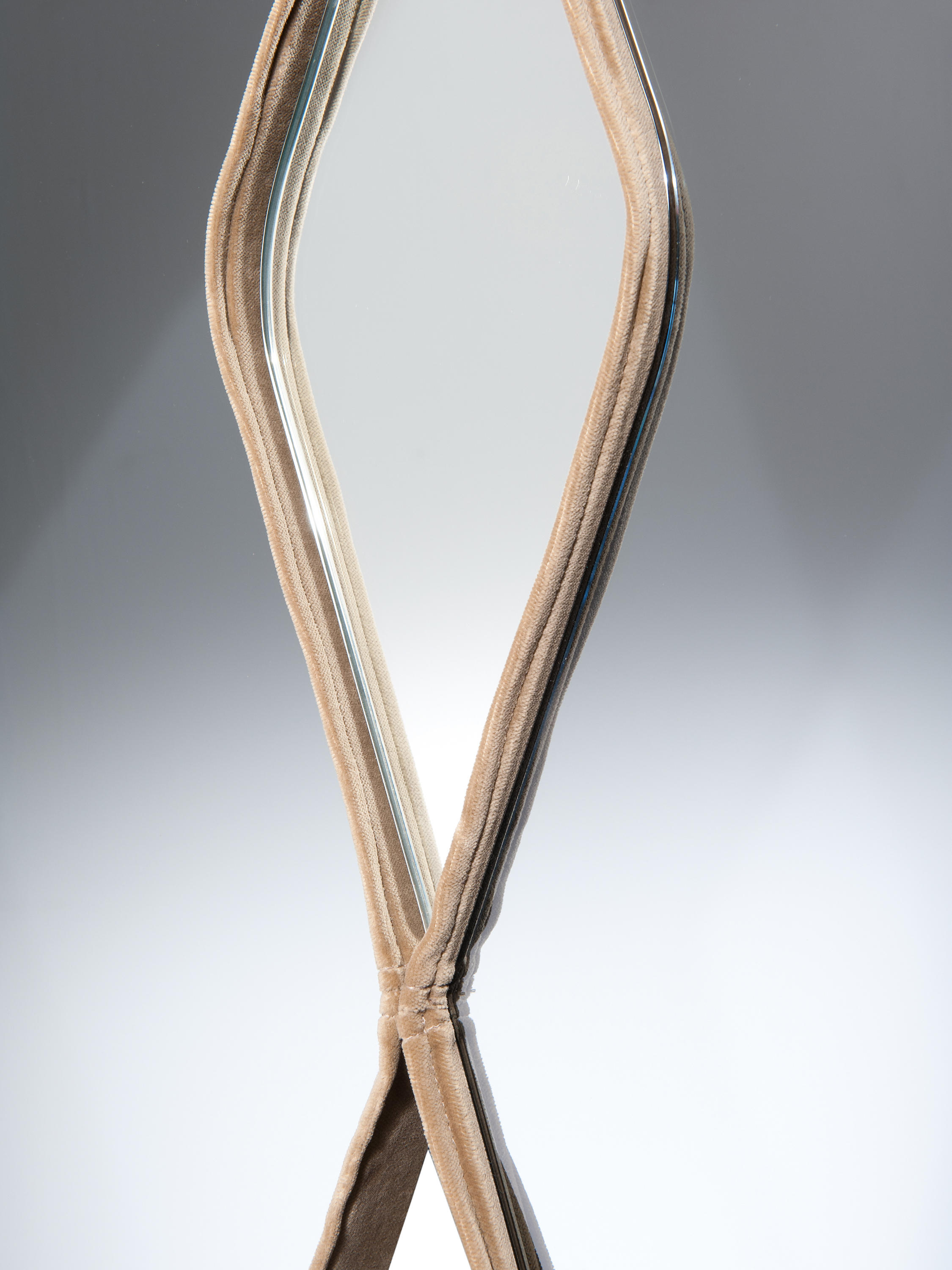 Gino Carollo设计的《名利场》(Vanity Fair)由镜子或烟熏玻璃制成。它以丝绒或皮革制成罩盖提供了一种严谨的精度和美感的效果,并与简单的菱形线形成对比。镜子可以是单、双、三、甚至是将模块并排放置在墙上。