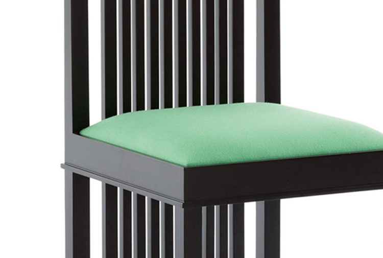 靠背椅,采用天然樱桃木、樱桃木色或黑色胡桃木制造。座垫采用聚氨酯海绵填充,皮革及布艺面料软包。