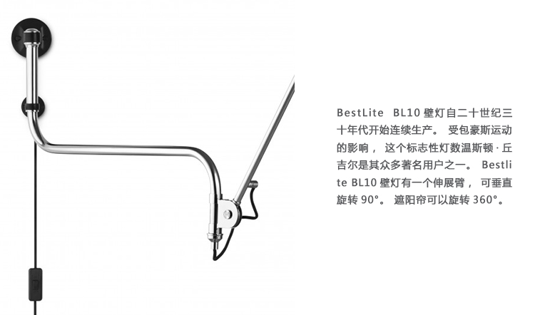 Bestlite BL10壁灯自20世纪30年代以来一直在不断生产。 受到包豪斯运动的极大影响,这款标志性的灯具将温斯顿丘吉尔列为众多知名用户之一。