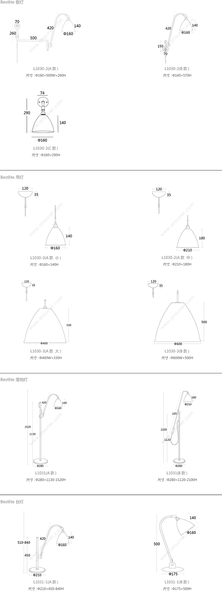 Bestlite 壁灯 系列尺寸/示意图