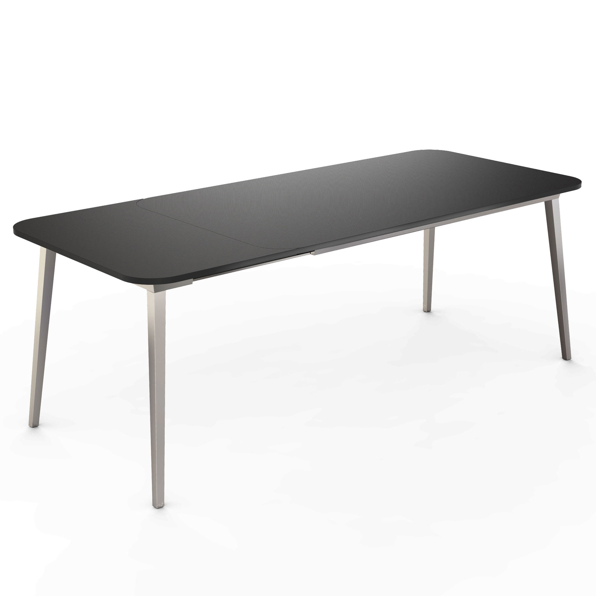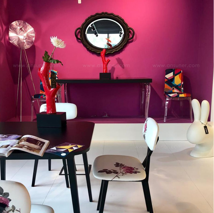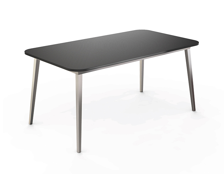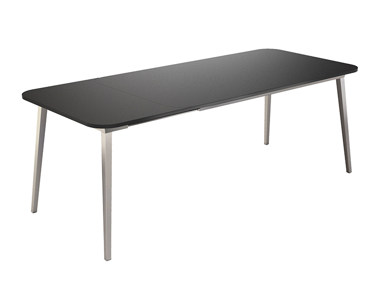 如果图形通常需要绝对黑色,设计师的目标是强调X在椅背的含义,其中没有其他线条干扰,但同时使其更具动感,座椅和背部装有软垫,面料色泽鲜艳,易于更换。 桌子是可伸展的,表面可以是木质的,也可以是单一材料的黑色塑料。