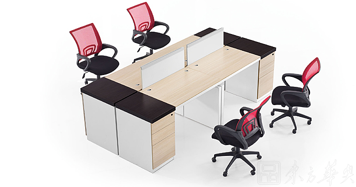 ※  多角度展示,以三胺板叠加作为侧脚板,或者以木质文件柜作为台脚,明亮开放的工作站设计,多种形状的排布组合,文件柜的区域的充分利用,增大办公的空间感!