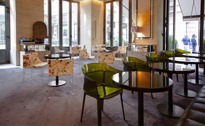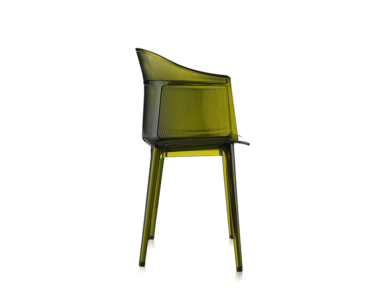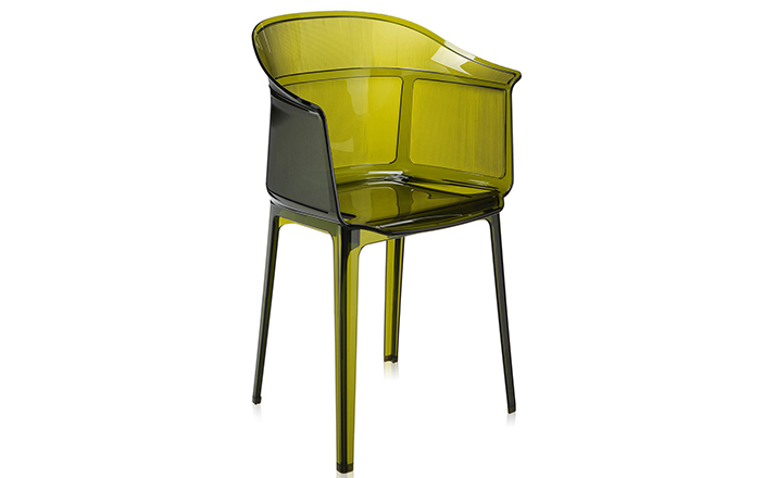 Papyrus Chair(纸莎草椅)是由Ronan & Erwan Bouroullec法国兄弟设计组合于今年为Kartell公司设计,并且在本次的米兰家具展中进行了展出。该设计的灵感来自于一把结构鲜明的古老座椅Linear,座椅本身非常舒适且重量很轻。其共有透明、黄、绿、紫、烟灰、棕、蓝和红八种颜色。这把椅子结合半透明的脚架,脚架“打磨”纤细的卵石状颗粒,并延伸至整个靠背的外轮廓,线条柔软和舒适。和整个结构都是透光的。因惊喜的做工和颜色的运用,使其非常吸引人。