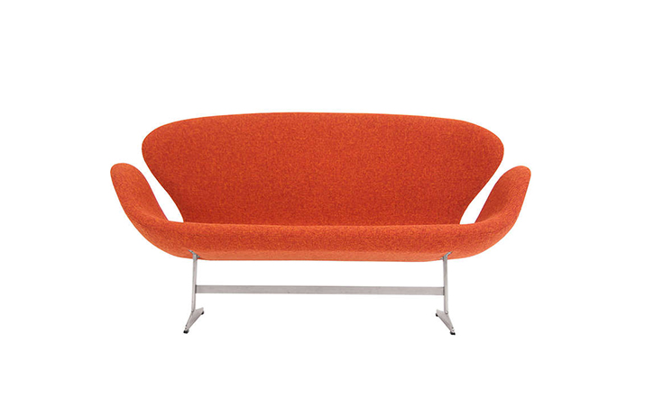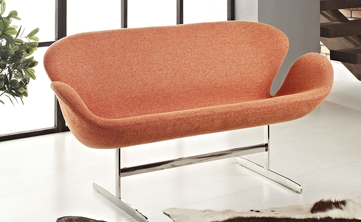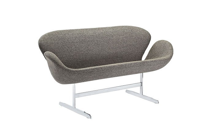 1958 年,Arne Jacobsen为哥本哈根皇家大酒店21楼房间的套房、 休息室和全景房设计的这套Swan Sofa(天鹅沙发)。天鹅沙发是两个坐席版本的天鹅椅,这个优雅的沙发设置在铝振动筛脚架上。优雅的和有机的形状非常适合休息室和等候区,以及家庭。雅各布森作为一个著名建筑师,同时也是一位非常成功的工业设计师,他为丹麦著名的FH家具公司〔FritzHansen〕设计了一系列座具家具,都成为市场欢迎的畅销产品。他的家具设计作品都是享誉国际的经典设计,天鹅椅就是其中之一;他将自由流畅的雕刻式塑形,以及北欧设计的传统特质相结合,使其作品具有质感非凡与结构完整的特点。天鹅椅制作采用玻璃钢框架内胆、内部填充高密度沙发棉、表面扪高级进口羊绒布料或PU或真皮、铝合金脚架(可振动)。
