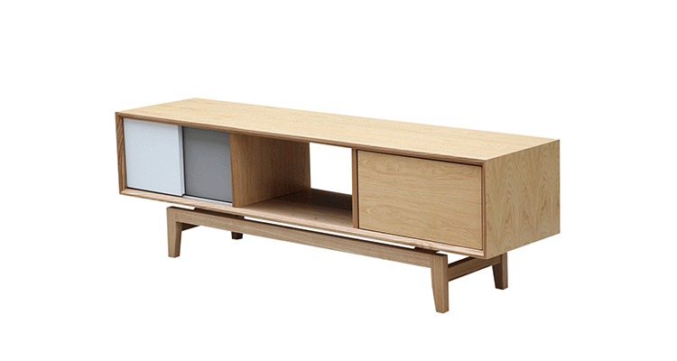 platform media cabinet(平台媒体橱柜)有着迷人的中世纪设计风格和当代形式巧妙融合,媒体橱柜主体平台由三组抽屉组成,中间的抽屉是敞开的,两侧的是滑动伸拉抽屉。在20世纪50年代末,60年代初, Finn Juhl和 Arne Vodder 最先尝试胶木和天然木的组合运用,并流行至今。这是大胆的创新,他们结合传统的新鲜的新兴技术与现代主义的概念。他们通过这些色彩绚烂的产品所实现的是令人印象深刻的比例的平衡。制作采用精选MDF板基材胡桃木或水曲柳木皮贴面、实木脚架、环保油漆喷涂,做工精湛,品质一流。