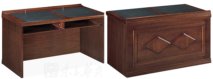 ※  全木制结构条形桌,桌脚可做直形及弧形,下设空格储物空间,内嵌式皮垫写字板,麦克孔,满足不同需要;