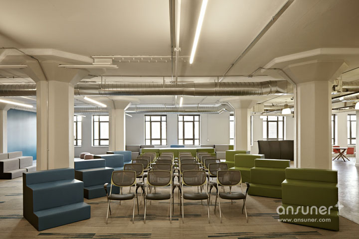 Runway社区,新兴创业者的孵化基地。设计的挑战在于如何将其打造成一个热情且具特色的办公空间,使其在众多同行中脱颖而出。设计团队以前卫的设计概念将这座位于 Twitter大楼占地30,000平方英尺的孵化基地打造成一个时尚的社区,而非仅用以工作的办公场所。刚起步的创业者可租用一套桌椅或400平方英尺的区域空间。