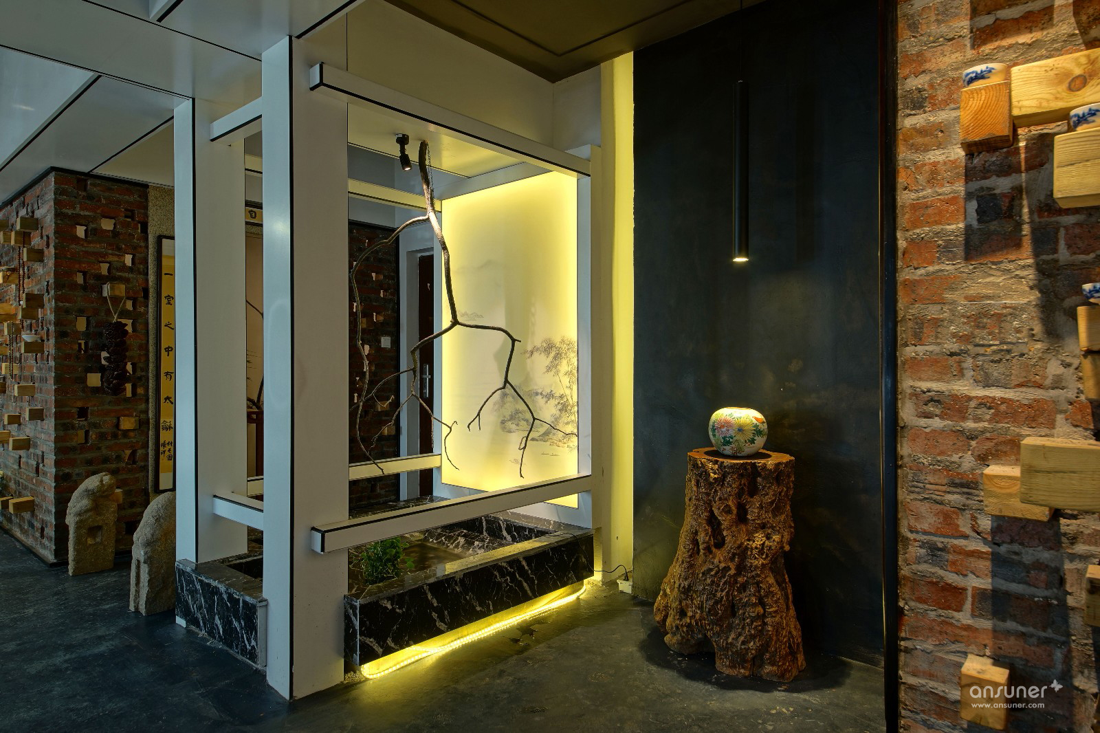 主要材料:自流平、红砖、麻石