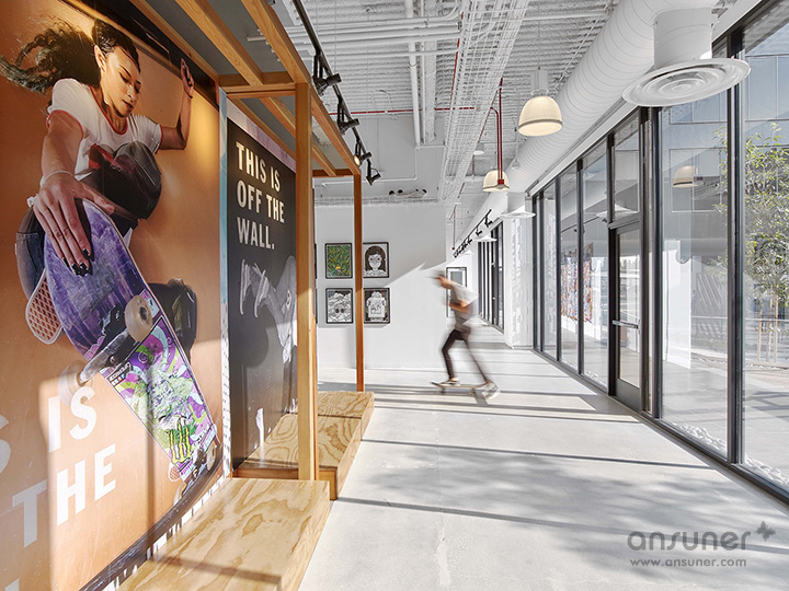 Vans代表的是一种精神一种生活方式。Vans以滑板运动为根,将艺术、音乐、运动和街头时尚文化注入Vans美学,形成潮流个性的青年文化标志。著名设计公司Rapt Studio将这种美学特征呈现于其加州科斯塔梅沙市的全球总部办公环境中。